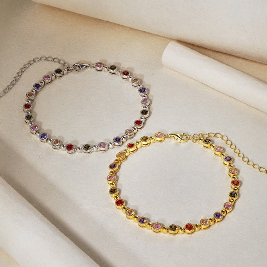 [GALE]Dazzling Colorful Round Cut Daily Bracelet