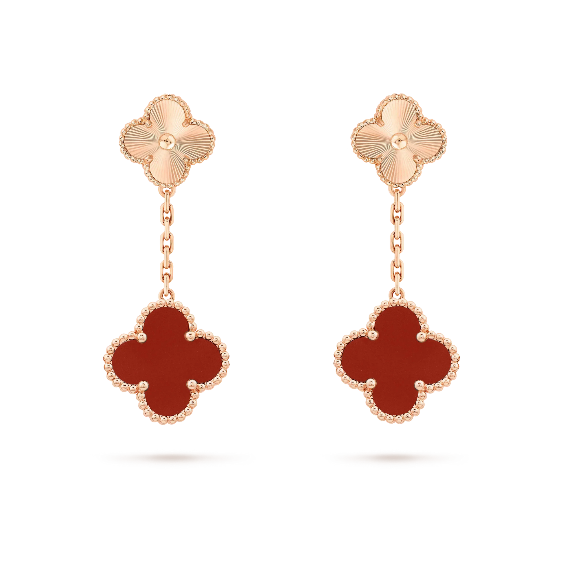 [GALE]CLOVER 2 MOTIF LASER CARNELIAN EARRINGS